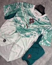 The complete set includes the away jersey paired with matching green shorts, giving you a sleek and authentic Portugal team look. Designed with lightweight and breathable fabric, this kit ensures maximum comfort whether you're playing football, training, or supporting Portugal on match day.
