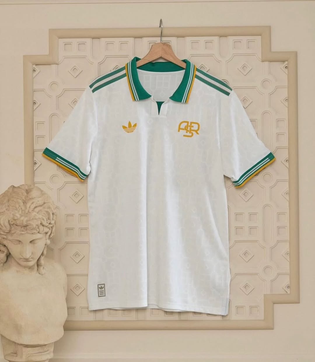 Minimal, elegant, and deeply rooted in heritage — the AS Roma 2025/26 Third Jersey (Player Version) is a perfect blend of classic Italian style and modern performance. Designed for fans who appreciate understated luxury, this jersey stands out with its clean white base highlighted by refined green and gold accents.
